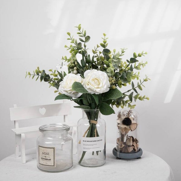 ht: 87.8g Flower head height: 4.5CM Bud diameter: 2.5CM Flower bud height: 4.5CM Flower head diameter: 8CM The price tag is one bundle, which consists of one flower head, two flower buds, and several leaves, grass, and berries Material: fabric plastic