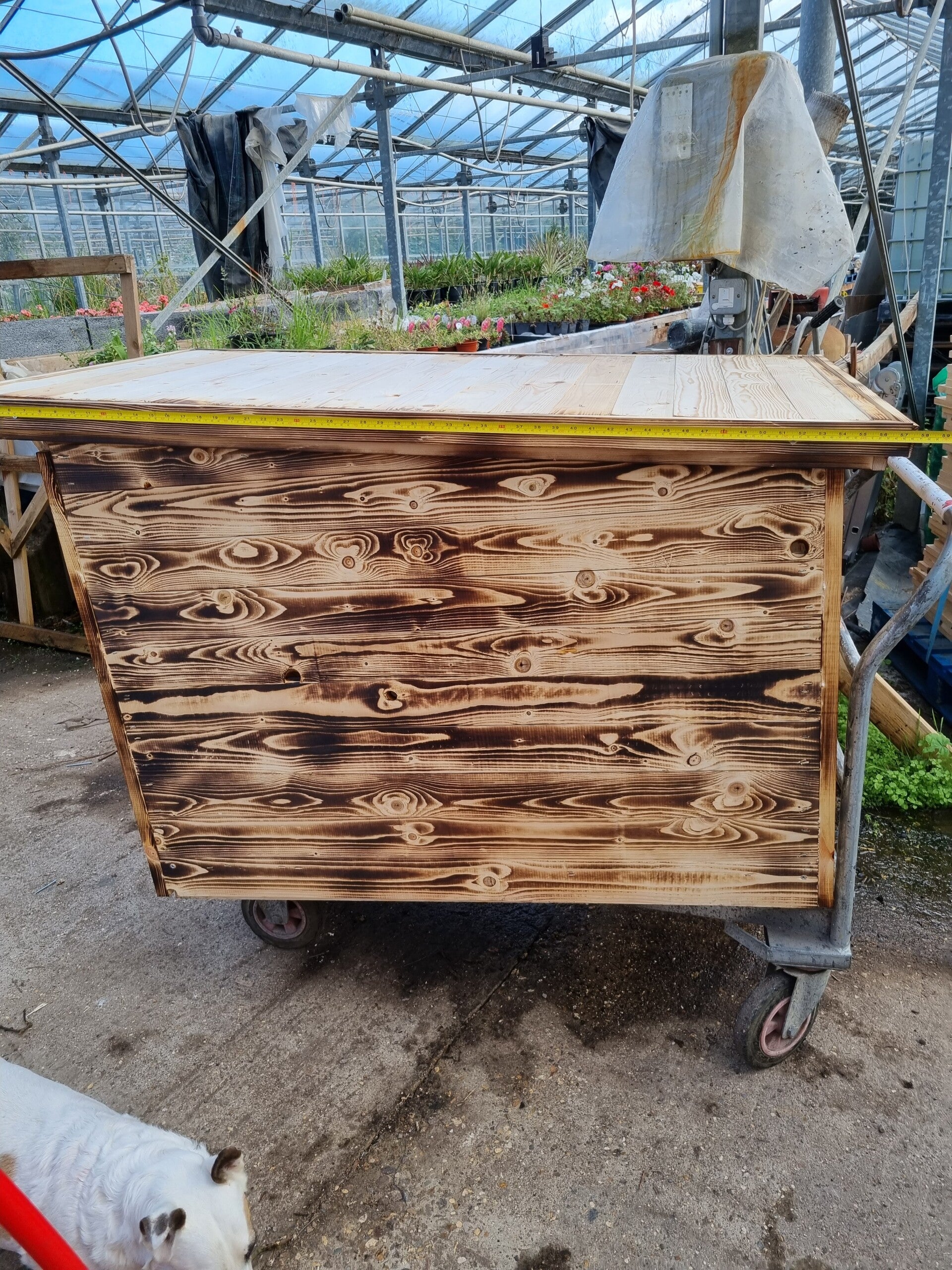 WIDTH 3FT LENGHT 4FT HIGHT FRONT 35 INS BACK HIGHT 32 INS